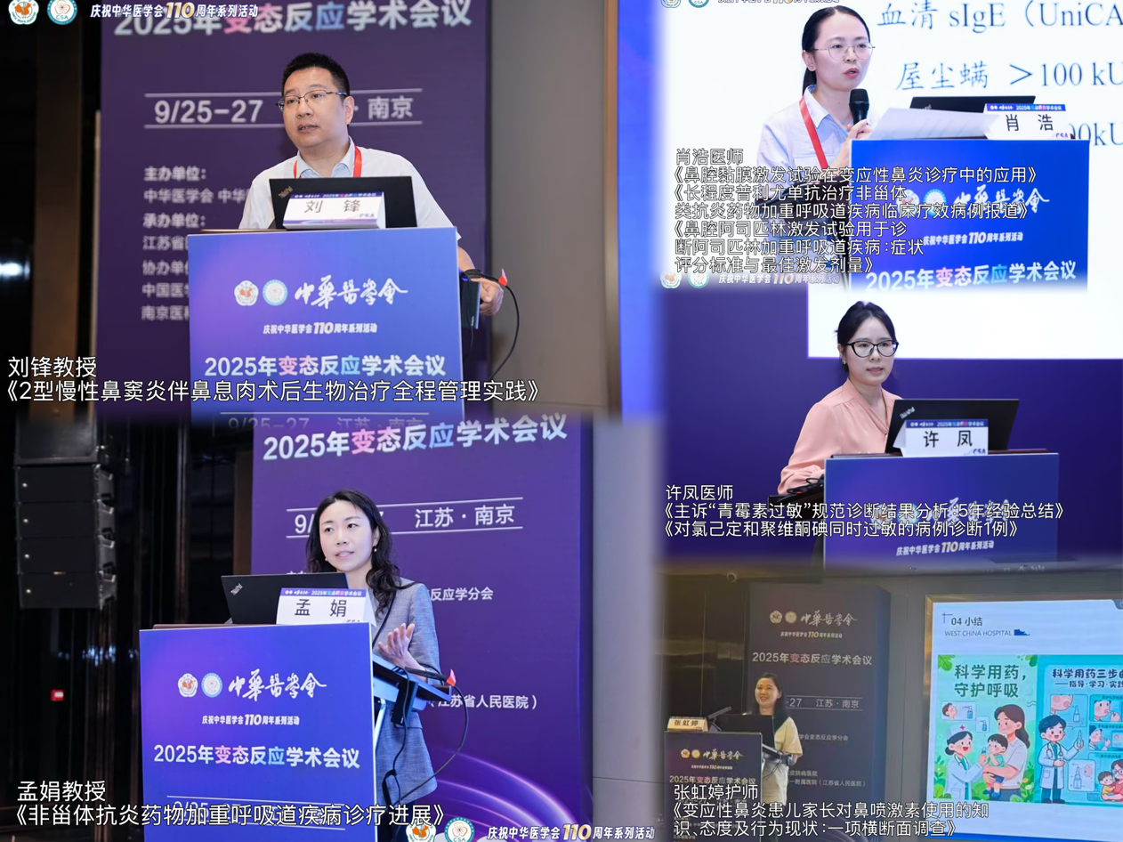 2025年9月25日至27日,中华医学会2025年变态反应学术会议在南京隆重召开。来自国内外变态反应相关领域的医学专家、学者及广大医学同道共聚一堂,畅叙情谊,共谋发展。四川大学华西医院耳鼻咽喉头颈外科刘锋教授及孟娟教授带领过敏中心团队亮相此次会议,并进行多场学术报告,展现了华西风采。