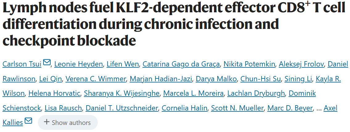 淋巴结在慢性感染与检查点阻断中驱动KLF2依赖性效应CD8+ T细胞分化
