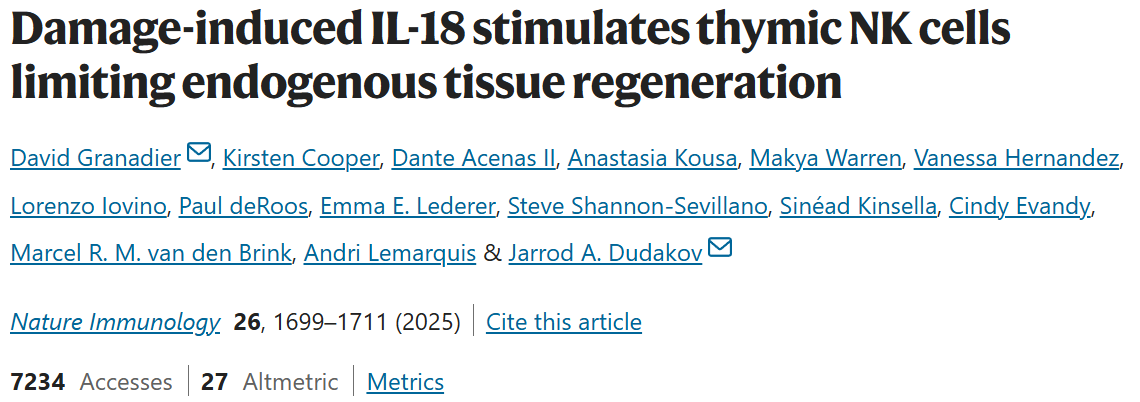 1. Damage-induced IL-18 stimulates thymic NK cells limiting endogenous tissue regeneration