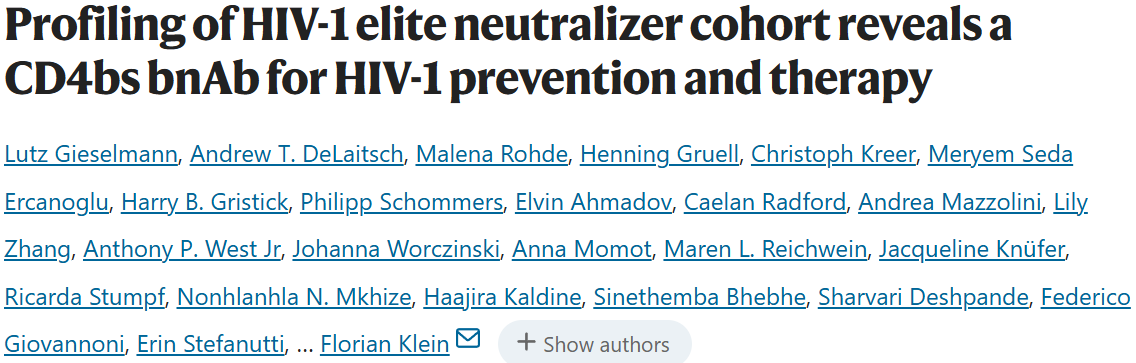 HIV-1精英中和者队列分析揭示靶向CD4结合位点的广谱中和抗体在HIV-1预防与治疗中的应用潜力