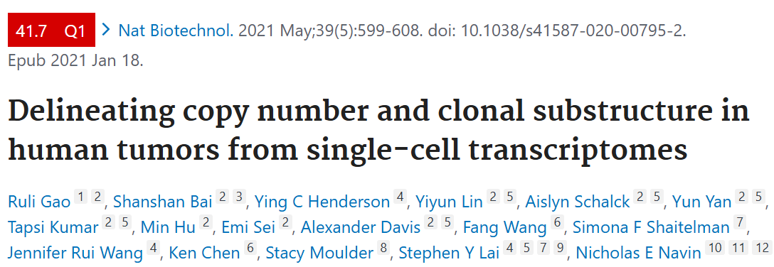 英文题目:Delineating copy number and clonal substructure in human tumors from single-cell transcriptomes