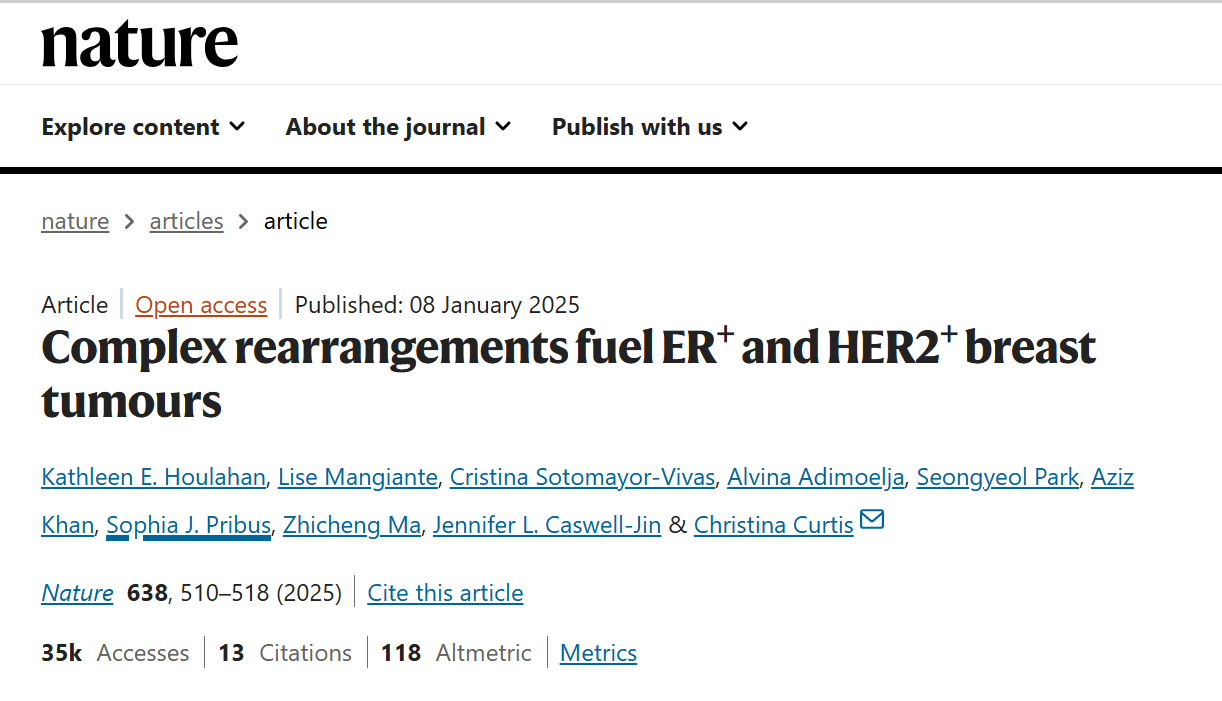 英文题目: Complex rearrangements fuel ER+ and HER2+ breast tumours