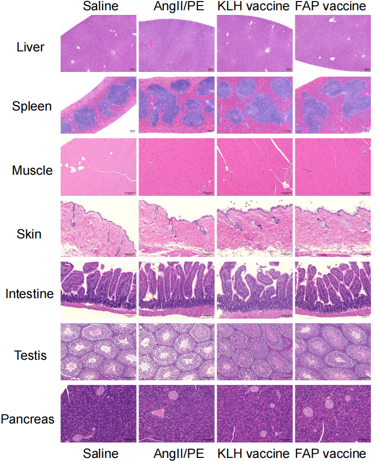 图S10:AngII/PE给药28天后FAP疫苗接种小鼠器官或组织的HE染色