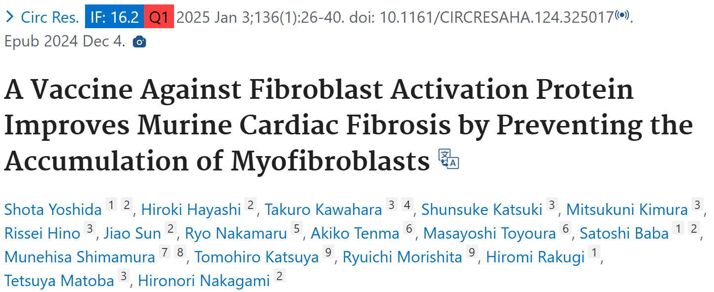 英文题目:A Vaccine Against Fibroblast Activation Protein Improves Murine Cardiac Fibrosis by Preventing the Accumulation of Myofibroblasts