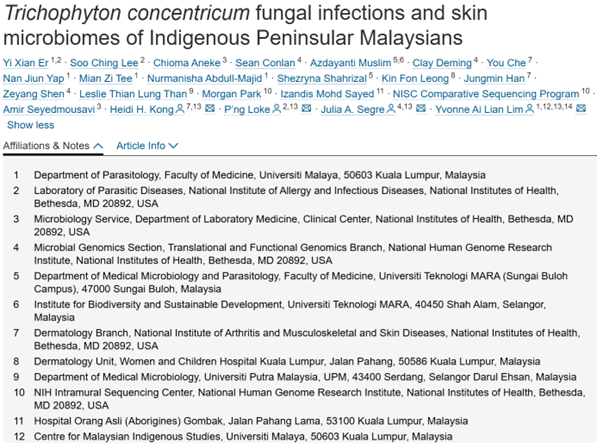 2. Trichophyton concentricum fungal infections and skin microbiomes of Indigenous Peninsular Malaysians