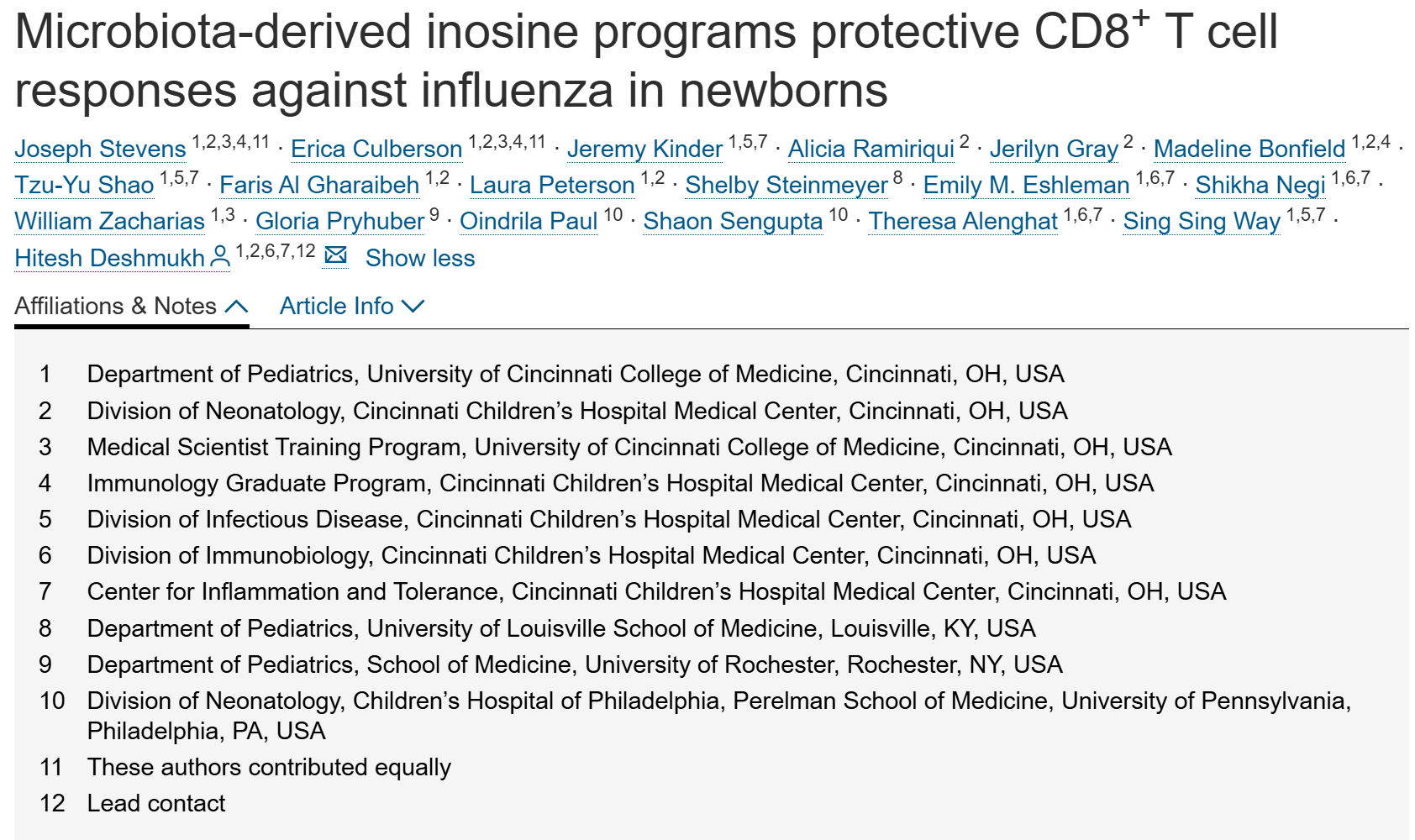 1. Microbiota-derived inosine programs protective CD8+ T cell responses against influenza in newborns