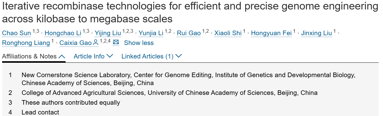 基因组编辑技术在高等生物中实现精准、大规模DNA操作时面临诸多挑战,包括效率低下、编辑规模和类型有限,以及可能残留重组位点等非预期序列(即“疤痕”)。本文提出了两种可编程染色体编辑系统——可编程染色体工程(PCE)和RePCE,可在植物和人类细胞中实现无疤痕的千碱基至兆碱基级DNA操作。通过高通量工程改造,本文获得了可逆性降低10倍的Lox位点,并应用人工智能辅助的重组酶工程方法(AiCErec),生成了重组效率为野生型3.5倍的Cre变体。整合Re-pegRNA介导的无疤痕策略进一步提高了编辑精度,可在染色体水平实现无疤痕的插入、缺失、替换、倒位和易位。该系统的关键应用包括:在水稻中实现315kb片段倒位以赋予除草剂抗性,无疤痕染色体融合,以及在人类疾病相关位点实现12Mb片段倒位。这些进展显著拓宽了基因组编辑在分子育种、治疗开发和合成生物学领域的应用范围。