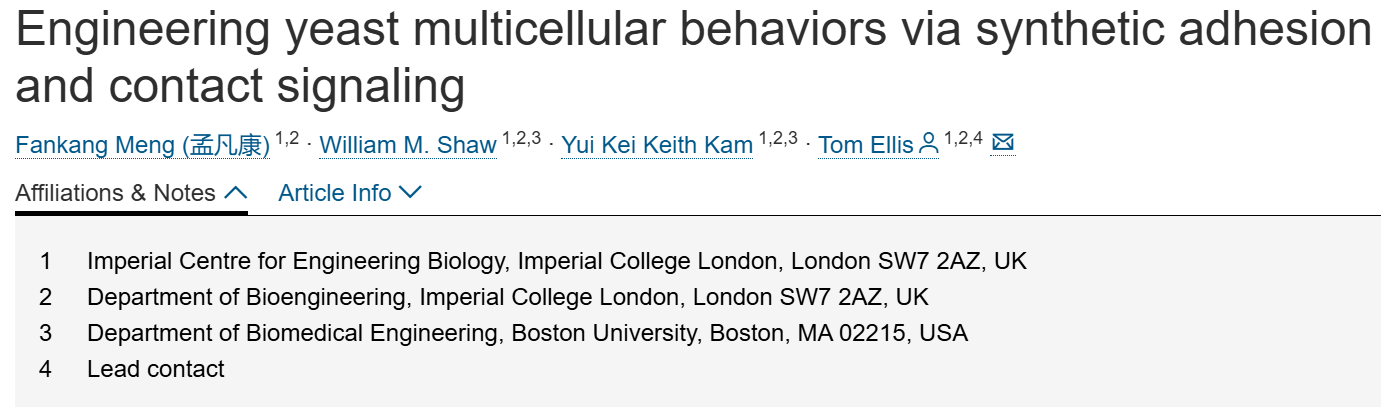 通过合成粘附和接触信号调控酵母多细胞行为