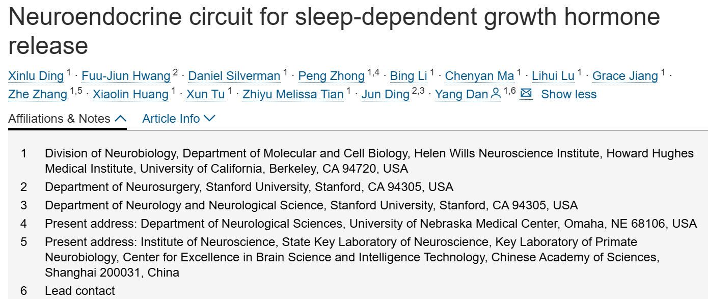 睡眠调控生长激素释放的神经内分泌回路机制