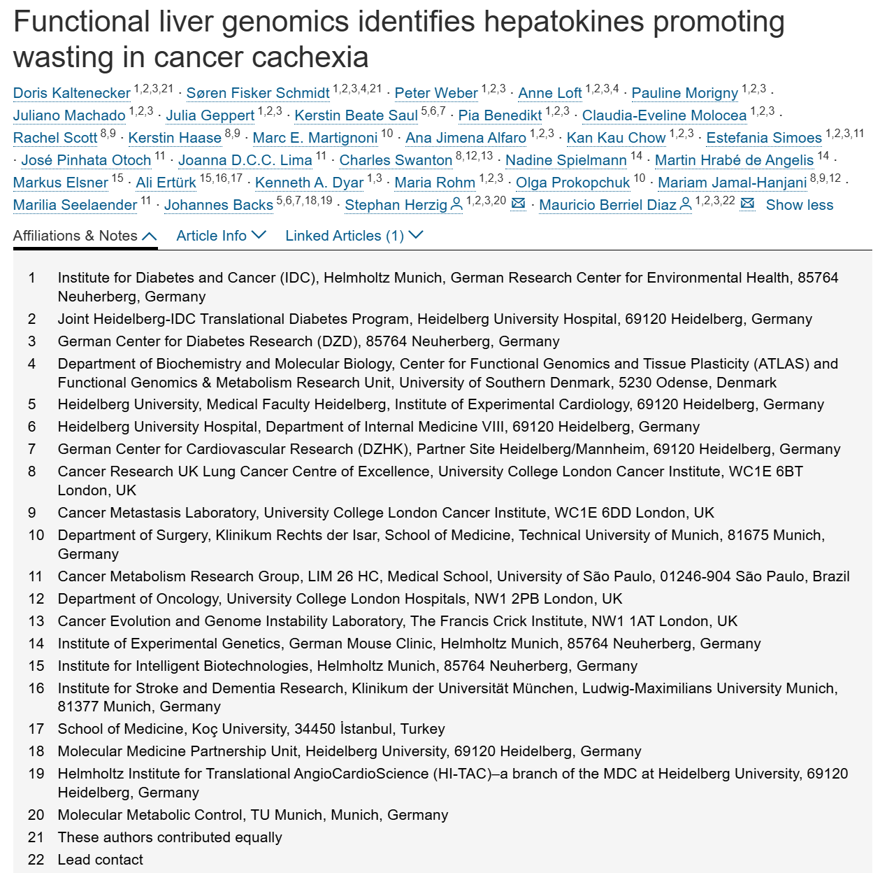 功能肝脏基因组学鉴定出在癌症恶病质中促进消瘦的细胞因子