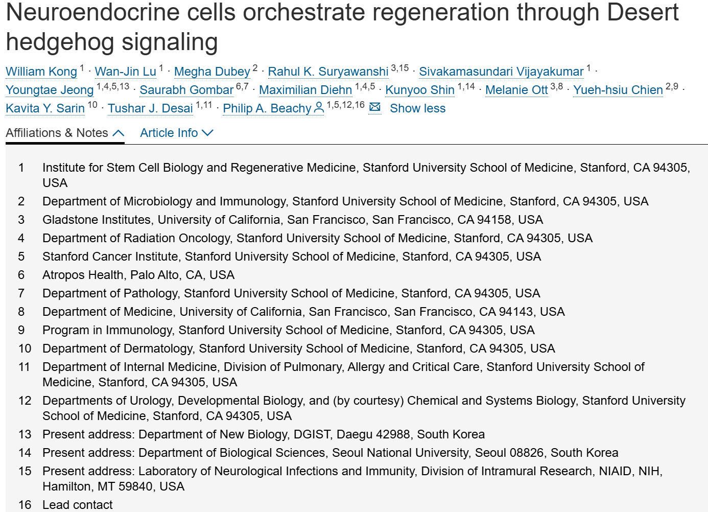 深入理解哺乳动物再生的潜在机制,有望推动新型再生疗法的研发。本研究提出一种机制:由上皮神经内分泌细胞分泌的Deserthedgehog(Dhh),可诱导间质细胞产生再生/保护反应。在哺乳动物气道中,这种间质反应能显著放大来自少量神经内分泌细胞的初始信号,从而激活整个气道组织,使其在二氧化硫(SO2)吸入损伤、流感病毒感染或新型冠状病毒(SARS-CoV-2)感染后实现存活与再生。类似地,由神经内分泌β细胞分泌的Dhh所介导的上皮-间质反馈(EMF)信号,也能保护小鼠胰岛免受链脲佐菌素(STZ)损伤。Hedgehog通路抑制剂治疗患者的糖尿病发病率更高这一现象,提示EMF信号在人胰岛中可能同样发挥作用。值得注意的是,通过小分子激动剂激活Hedgehog通路以增强EMF信号,不仅能保护胰腺β细胞免受STZ损伤,还能抵御SO2及流感病毒所致的气道损伤。这一机制在化学性或感染性气道损伤及糖尿病的防治中,具有潜在的保护/治疗价值。