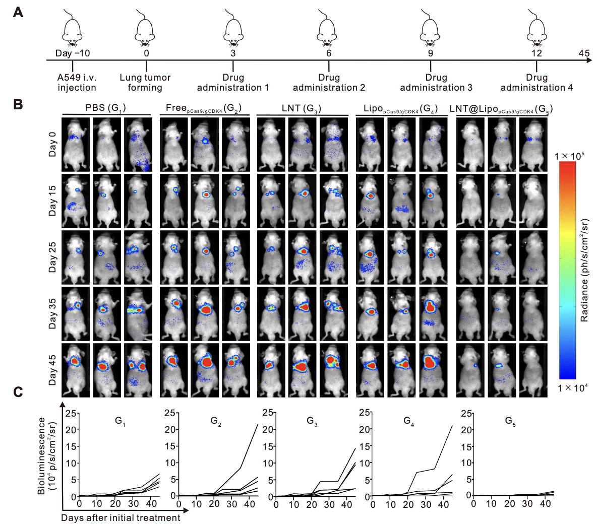 五、LNT@LipopCas9/gCDK4介导的KRAS突变型NSCLC的肿瘤减退