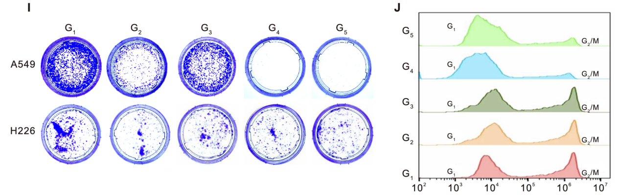 细胞增殖抑制(集落形成实验):LNT@LipopCas9/gCDK4处理后,A549细胞的集落形成数量显著减少,集落体积明显缩小;而H226细胞的集落形成能力未受明显影响(图3I),进一步验证了CDK4敲除对KRAS突变型肿瘤细胞增殖的特异性抑制作用。