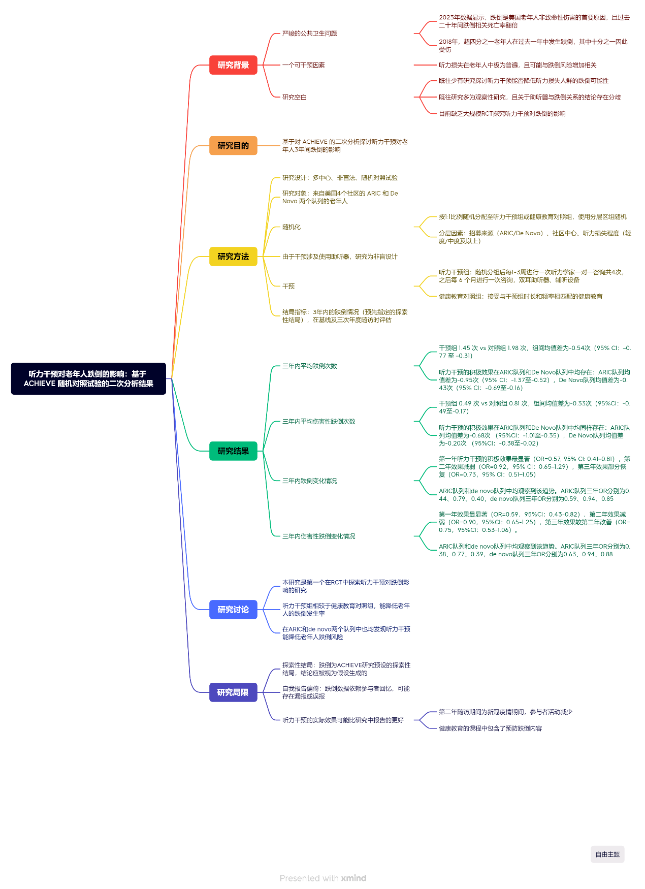 本研究也存在一些局限:1、探索性结局:跌倒为主研究预设的探索性结局,结论应被视为假设生成的。2、自我报告偏倚:跌倒数据依赖参与者回忆,可能存在漏报或误报。3、COVID-19影响:第二年随访期间为新冠疫情期间,参与者活动减少,减小了两组间的差异。4、对照组干预:健康教育的课程中包含了预防跌倒内容,这可能减弱了听力干预的真实效果。